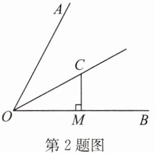 2. 如图,OC 为∠AOB 的平分线,CM⊥OB,OC= 5,OM= 4,则点 C 到射线 OA 的距离为