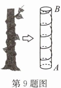 9. (东营中考)我国古代有这样一道数学问题:“枯木一根直立地上,高二丈,周三尺,有葛藤自根缠绕而上,五周而达其顶,问葛藤之长几何?”题意是:如图,把枯木看作一个圆柱体,因一丈是10尺,则该圆柱的高为20尺,底面周长为3尺,有葛藤自点A处缠绕而上,绕5周后其末端恰好到达点B处.则问题中葛藤的最短长度是__