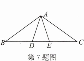 7. 如图,$∠B= ∠C= 36^{\circ },∠ADE= ∠AED= 72^{\circ },$则图中的等腰三角形有(