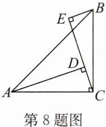 8. 如图,$∠ACB= 90^{\circ },AC= BC,AD⊥CE,BE⊥$CE,垂足分别是D,E,$AD= 3,BE= 1$,则DE的长是(