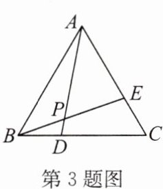 3. 如图,在等边三角形ABC中,$BD= CE$,AD与BE相交于点P,则$∠APE$的度数是(