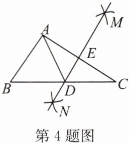 4. 如图,在$△ABC$中,分别以点A和点C为圆心、大于$\frac {1}{2}AC$的长为半径画弧,两弧相交于点M,N,作直线MN分别交BC,AC于点D,E.若$AE= 3cm,△ABD$的周长为13 cm,则$△ABC$的周长为(