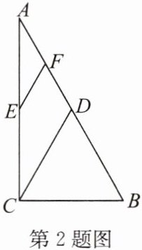 2. 如图,在$Rt△ABC$中,$∠ACB= 90^{\circ },∠A= 30^{\circ },$D,E,F分别为AB,AC,AD的中点,若$BC= 2,$则EF的长度为(