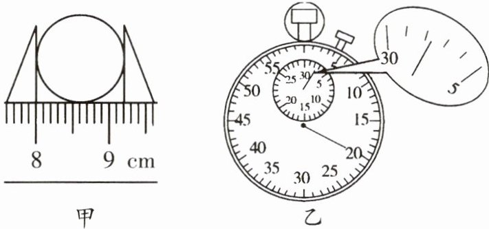 8. 如图甲所示,圆形物体的直径是______cm,如图乙所示,秒表的读数为______s.