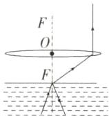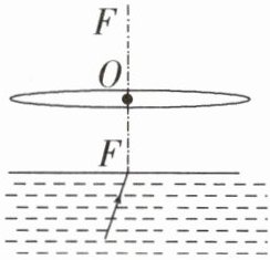 22. 如图所示,凸透镜与水面平行,一侧的焦点恰好在水面上,水中一束入射光线射向凸透镜的焦点,请画出这束光线发生反射和折射后的光路图.