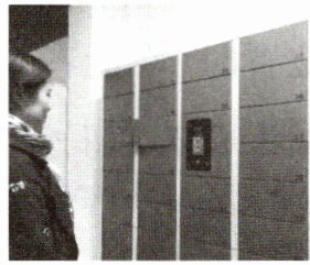 18. 如图是超市安装的一种刷脸自助储物柜.某顾客站在屏幕前 50 cm 处,按下“存”按钮,屏幕上方的摄像头启动,出现人脸缩小的像,柜门打开.下列说法正确的是 (