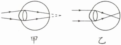 )A.甲是近视眼,应配戴凸透镜制成的眼镜矫正