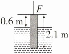 15. 科学家在进行海洋科考时,常用到一个很大的浮筒.浮筒是由一个质量为90kg的空心圆柱形铁罐制成的,铁罐高为2.1m,底面积为$0.08m^{2}$.把浮筒置于海面时,它的一端浮出水面,上方可安装无线电转播器.某次科考中,工作人员装好无线电转播器,将浮筒竖直漂浮在海面上后,浮筒露出水面的高度(不含无线电转播器的高度)为0.6m,如图所示(海水密度取$1.0×10^{3}kg/m^{3}$,g取10N/kg).求: