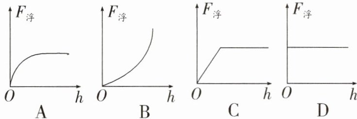 10. 如图所示,烧杯中装有某种液体,A为圆柱形木块,用外力F缓慢将A压入其中,h表示木块的下表面到液面的距离,下列关于木块所受浮力F浮和h的关系图像正确的是(