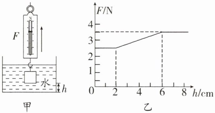 11.(多选)小李同学在探究某种液体密度的实验中,用弹簧测力计悬挂一个正方体金属块,浸没在液体中,如图甲所示,缓慢地将金属块从液体中竖直提起,该过程中弹簧测力计读数F随金属块提起高度h的关系如图乙所示,g取10N/kg,若不考虑液面变化,则根据图像信息可以确定(
