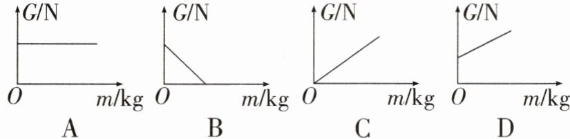 6. 如图所示的图像中,能正确反映重力和质量关系的是(