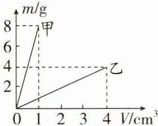 7. 甲、乙两种物质的质量和体积的关系图像如图所示,若用质量相等的甲、乙两种物质分别制成等高的实心圆柱体A、B,把它们并排竖直放在水平地面上,则两圆柱体A、B对水平地面的压强之比是(