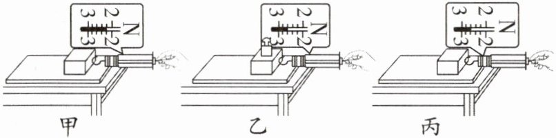 .(3)如图丙所示,小龙也用弹簧测力计水平拉动木块在长木板上做直线运动,在乙、丙两次实验中,木块所受的摩擦力分别为f_{乙}、f_{丙},则其大小关系为f_{乙}______