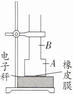 ①将容器固定在放有电子秤的铁架台上,使橡皮膜刚好与电子秤完全接触,且电子秤的示数为零,如图所示.