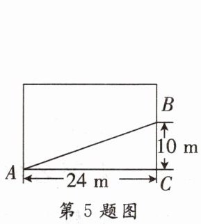 5. 如图,有一块长为 24 m 的长方形土地,在土地旁边 B 处有健身器材. 居住在 A 处的居民最少走______步可到 B 处健身(假设 2 步为 1 m).