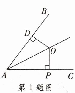 1. 如图,$OD⊥AB于点D$,$OP⊥AC于点P$,且$AD = AP$,则$△AOD与△AOP$全等的理由是(