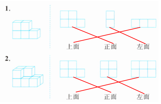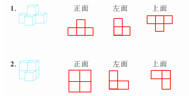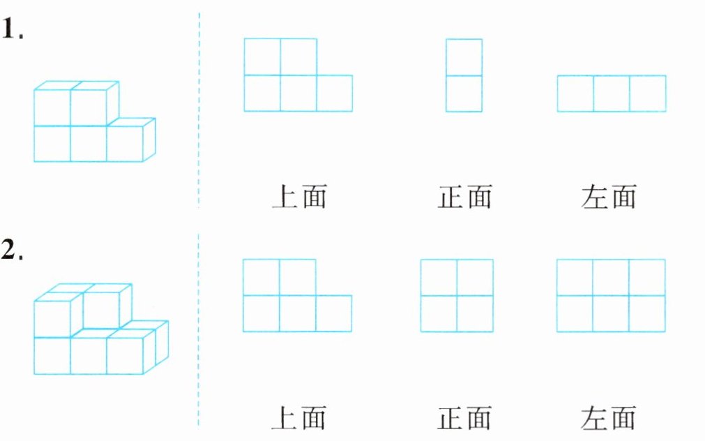 二、分别画出从正面、左面和上面看到的图形。