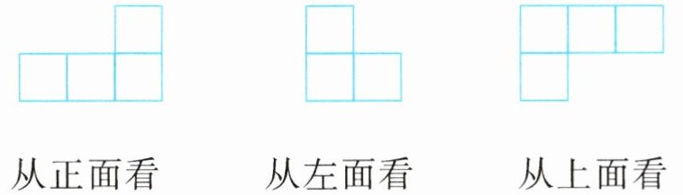 三、根据下面从不同方向看同一个物体看到的图形摆一摆立体图形。