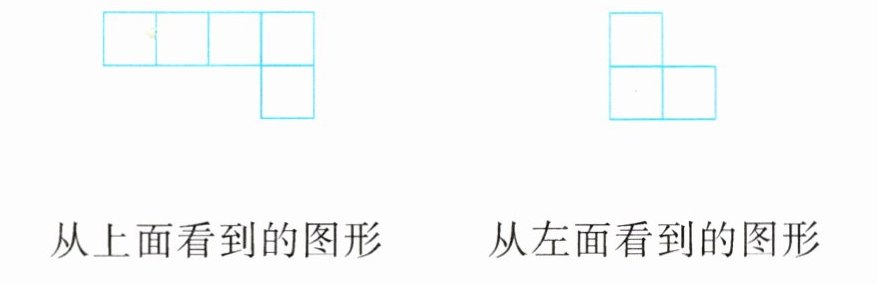 四、一个立体图形从上面和左面看到的图形如下图所示,搭一个这样的立体图形最少需要(