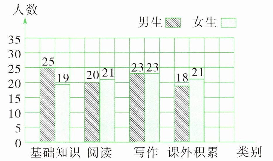 )人。2. 哪种语文能力考核合格的男生最多?哪种语文能力考核合格的男生最少?两者相差多少人?