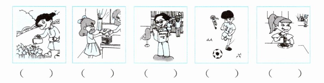 第三幅图:图中人物拿着一本故事书,与“read a storybook”(读故事书)匹配。