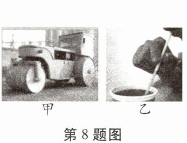8. 如图甲所示,压路机的车轮做成圆柱形,是为了在压力相等的情况下,减小受力面积,增大