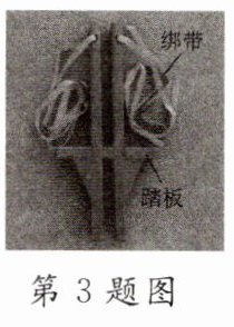 3. (2023·烟台)在2023年的央视春晚上,来自烟台的金娃艺术团表演的具有浓郁“海阳大秧歌”特色的儿童舞蹈《我和爷爷踩高跷》在全球华人面前华彩绽放.当小朋友踩在高跷(如图所示)上竖直站立不动时,下列说法正确的是(