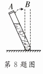 8. (2024·湖南模拟)如图所示,将盛有适量水的试管由倾斜位置$A缓慢移至竖直位置B$.在此过程中,水对试管底部的压强(