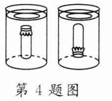 4. (2024·湖北模拟)一个空药瓶,瓶口扎上橡皮膜竖直地浸入水中,一次瓶口朝上,一次瓶口朝下,两次药瓶在水里的位置相同(如图所示),下列关于橡皮膜的说法正确的是(