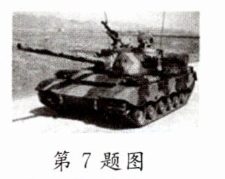 7. (2024·百色模拟)如图所示是我国自主研制的坦克,它具有潜渡功能.当坦克潜入水中,顶部舱门离水面$5m$深时,舱门受到水的压强为($\rho_{水}= 1.0×10^{3}kg/m^{3}$)(