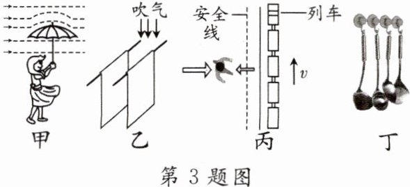 C.图丙,等候列车的乘客应站在安全线以外,否则可能会被“吸”向列车