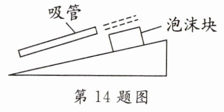 14.(2024·贵州模拟)如图所示,泡沫块正在沿粗糙斜面缓慢下滑,现用吸管沿泡沫块上表面吹气。请判断吹气过程中它将继续下滑还是停止滑动?请写出判断理由。