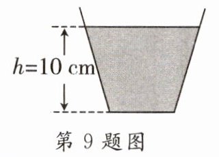 9.(2024·四川模拟)如图所示,容器中装有深度为10cm,质量为60g的水,已知容器的质量为30g,底面积为5$ cm^{2} $,容器底部受到水的压强为____