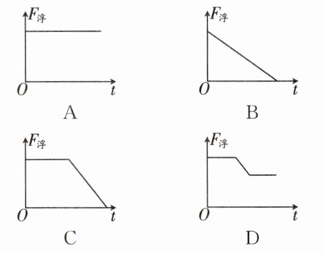 4.(2023·常州)为拯救濒危物种中华鲟,生物学家在放养的中华鲟身上拴上定位硬壳胶囊。数天后,胶囊与潜入水中的中华鲟脱离,最终漂浮于江面发射定位信号。脱离后,胶囊受到的浮力随时间变化的关系为下列图中的(