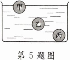 5. 分别用木头、铜、铁制成甲、乙、丙三个小球,将它们放入水中,三个小球静止时位置如图所示,以下判断正确的是(