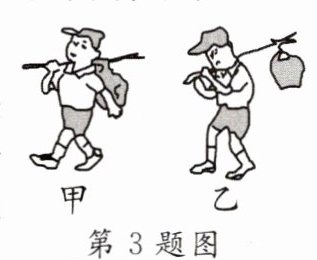 3. (2024·山东模拟)如图甲、乙所示是某人分别用两种方式挑着同一物体行走时的情景, 小强看后感到疑惑, 于是想用实验的方法一探究竟. 他要研究的问题是: 在杠杆平衡的情况下 (