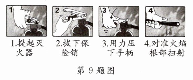 9. (2024·浙江模拟)消防安全, 人人有责. 下列有关灭火器使用方法的分析不正确的是 (