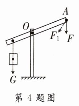 4. (2024·山东模拟)如图所示, 在杠杆左端悬挂物体, 右端施加动力$F$, 杠杆处于平衡状态 (忽略杠杆自身重力的影响), 下列说法正确的是 (