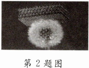 2. (2024·常州期中)如图所示是一种未来可用于航空飞行器制造的“微格金属”特殊材料,可放置在一朵蒲公英上,最高能承受 $ 1400 \, ^ { \circ } \text{C} $ 的高温;用外力将它压缩 $ 50 \% $,外力撤销后能够完全恢复原状. 下列物理属性与它无关的是(