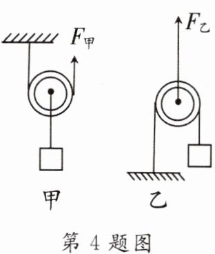 4. (2023·常德)如图所示小明组装了甲、乙两种滑轮,用来提升同一物体,$ G_{物} = 200N $(不计绳重、轮重和摩擦),要使物体竖直匀速提升2m.下列说法中正确的是(
