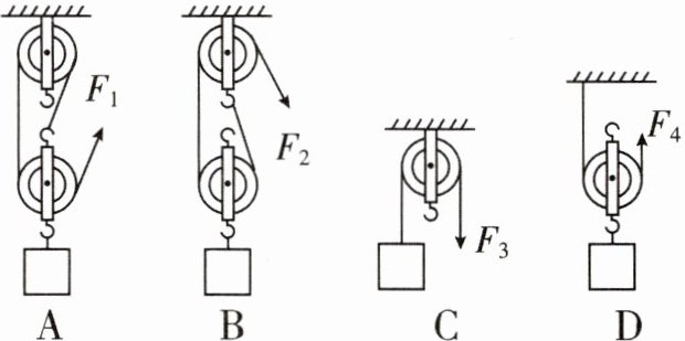 1. 使用定滑轮提升重物,当分别在$ F_1 $方向、$ F_2 方向和 F_3 $方向拉重物时(