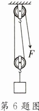 6. (2024·湖南模拟)利用如图所示的滑轮组匀速提升200N的重物,动滑轮重为10N(不计绳重与摩擦),则拉力$ F $的大小为(
