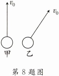 8. (2024·砀山县二模)甲、乙两个完全相同的小球,从同一位置以相同速度$v_{0}$分别竖直上抛和斜上抛,空气对小球的阻力忽略不计,下列说法中正确的是(