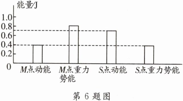 6.(2024·广东模拟)球竖直向上运动,并落回地面,这过程中先后经过M、S两点.球在这两点的动能和重力势能如图所示,则球在M点的 (