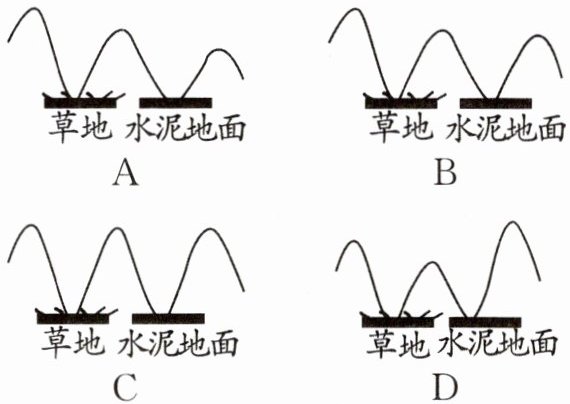 2.(2023·南通)如图所示,从空中落下的排球先后在草地和水泥地面上弹起,你认为排球运动的轨迹最有可能的是 (