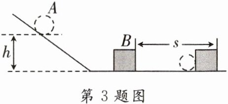 3.(2024·山东模拟)如图所示是探究“物体的动能跟哪些因素有关”的实验.实验中,让同一铜球从斜面的不同高度由静止释放,撞击同一木块,下列说法正确的是 (