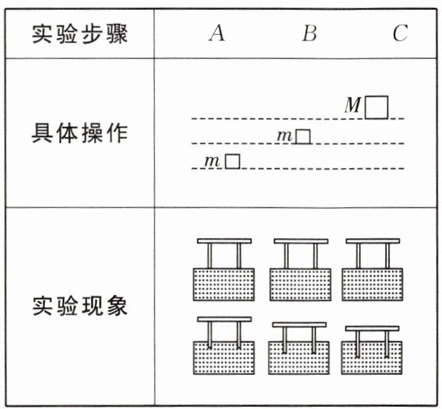 (1)让重物自由下落到平放在细沙表面的小桌上,通过观察桌腿下陷的深度判断