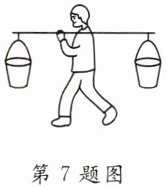 7.(202·恩施州模拟)如图所示是小强参加劳动实践挑水时的场景.若扁担重10 N,每只桶总重均为200 N,当扁担在水平位置保持静止时,扁担受到肩的支持力约为 (
