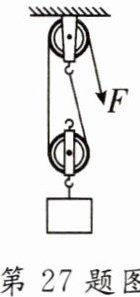 27. 如图所示,在200 N的拉力F作用下,用滑轮组将重为300 N的物体匀速向上提升2 m,不计摩擦和绳的重力.(g取10 N/kg)求: