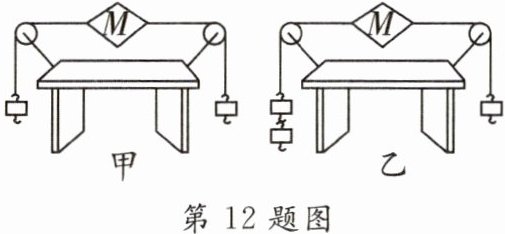 12. (2024·泸州模拟)某实验小组探究二力平衡条件的实验装置如图所示,M为一轻薄塑料片,实验中所用的钩码均为100g,不计绳重及摩擦(g取10N/kg).